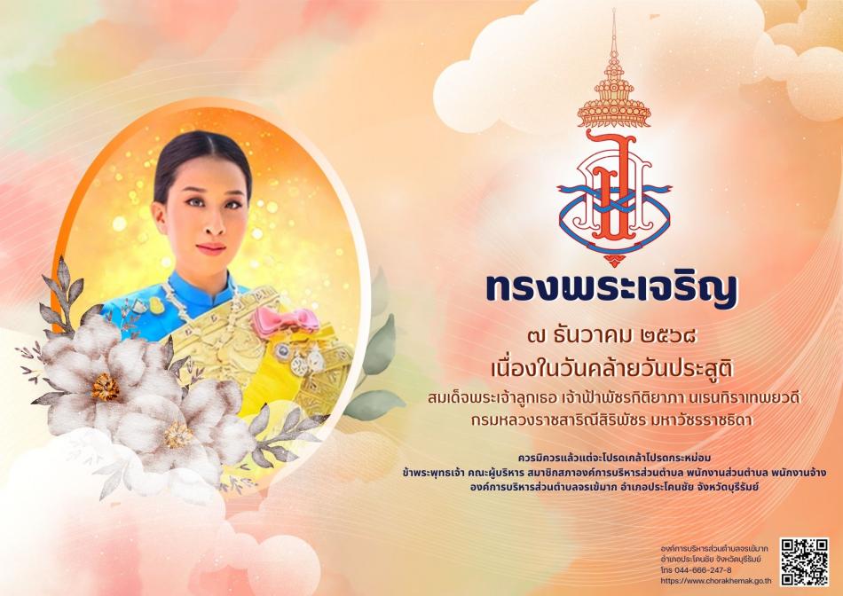 ๗ ธันวาคม ๒๕๖๘ เนื่องในวันคล้ายวันประสูติ สมเด็จพระเจ้าลูกเธอ เจ้าฟ้าพัชรกิติยาภา นเรนทิราเทพยวดี กรมหลวงราชสาริณีสิริพัชร มหาวัชรราชธิดา
